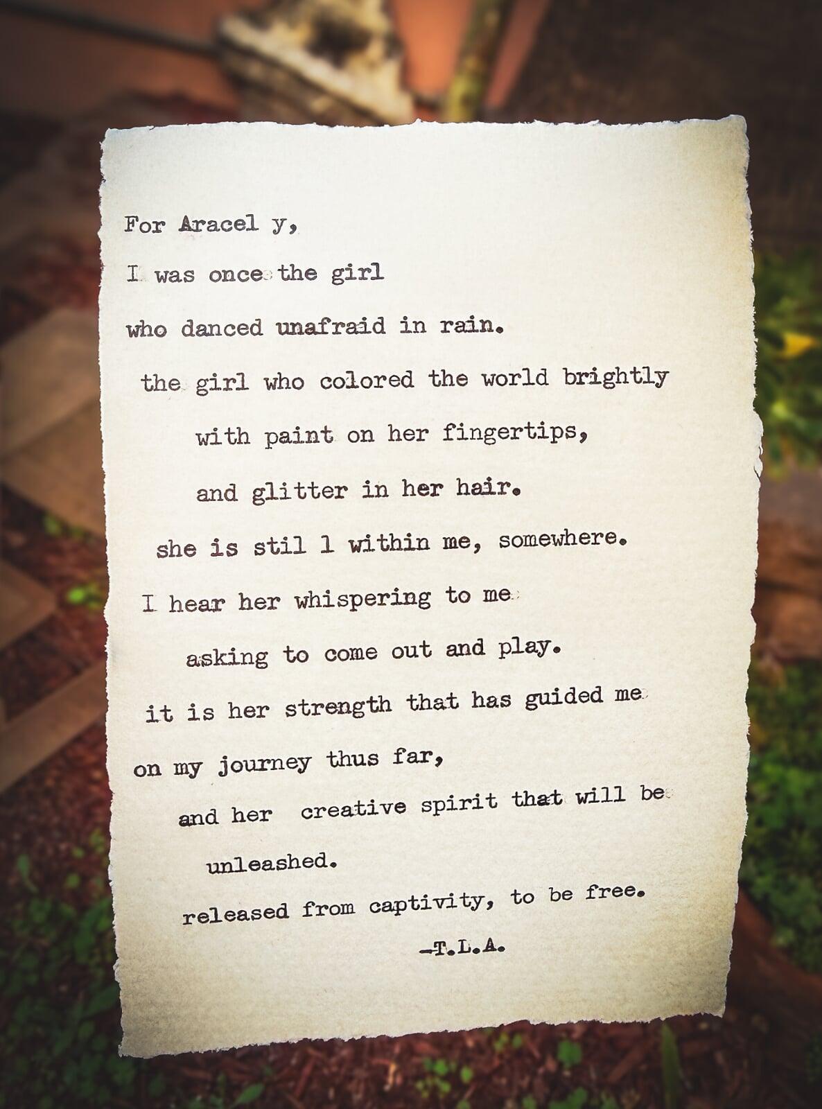 Custom and personalized typewriter poems for love, loss, legacy, or whatever your heart needs.
